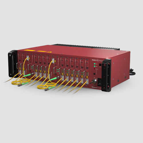 The Koheras ACOUSTIK is a rack or table-mounted 16-slot modular laser system. It integrates multiple Koheras BASIK fiber laser modules, BOOSTIK amplifier modules, and HARMONIK frequency conversion modules. To make integration easy, the ACOUSTIK provides power and control to all modules. Mix and match wavelengths in the 1 and 1.5 µm range to suit your application and upgrade to more channels when you need them. The ACOUSTIK has a fan-less, robust industrial design.
